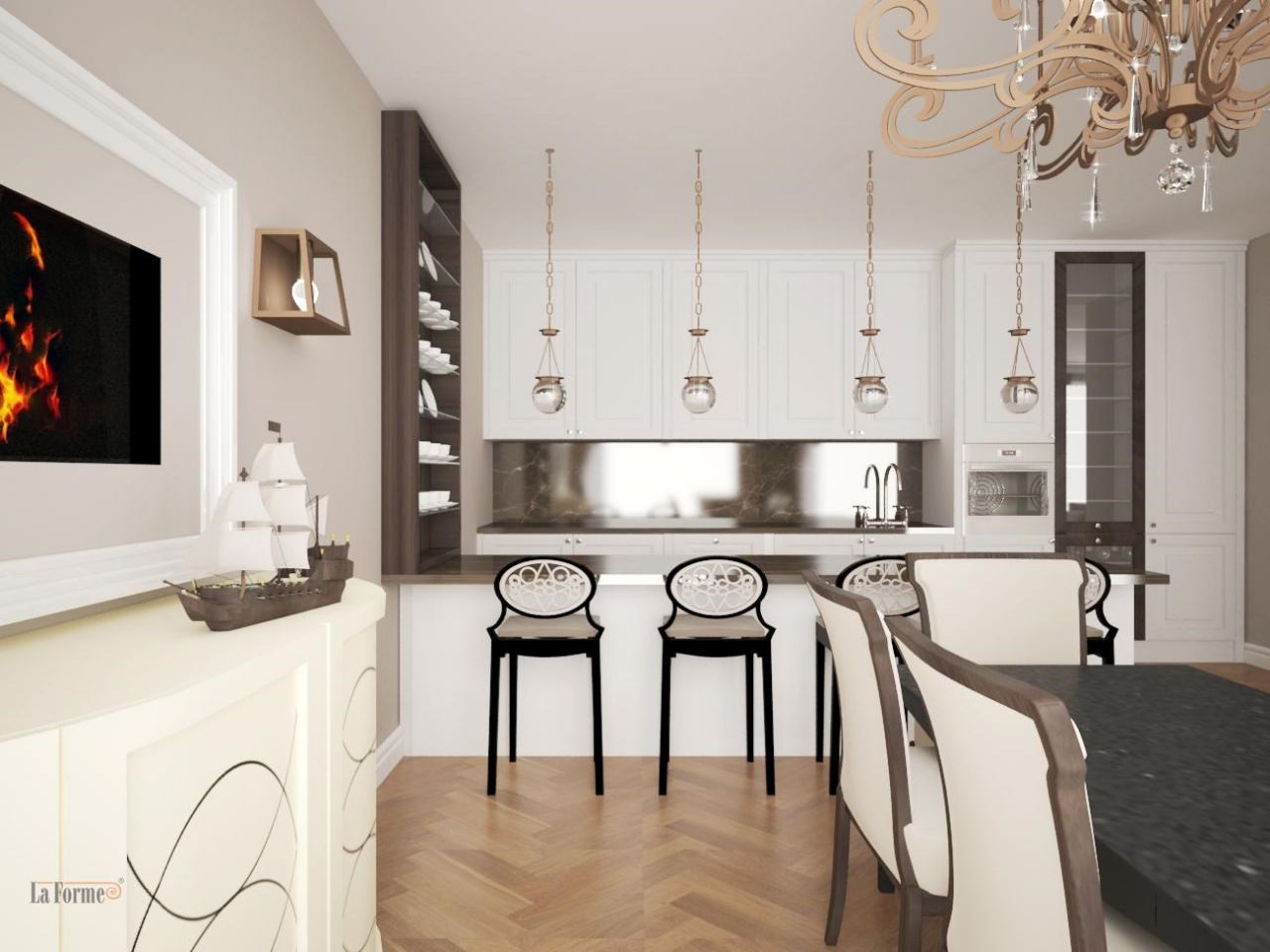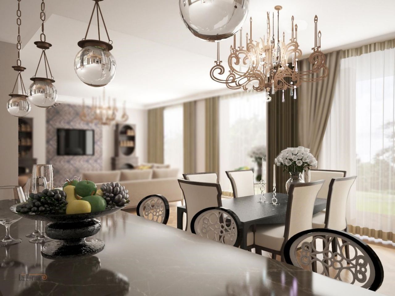 Большая квартира с 4 спальнями и гостиной комнатой c кухней.