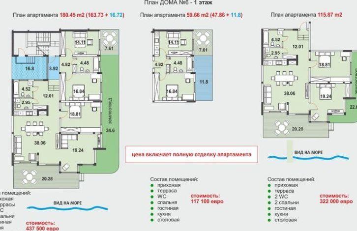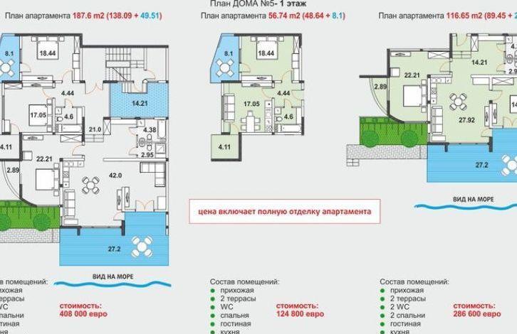 - с 2 спальнями 116. 65 м2 - 196,800 евро дополнительно терраса 27 м2