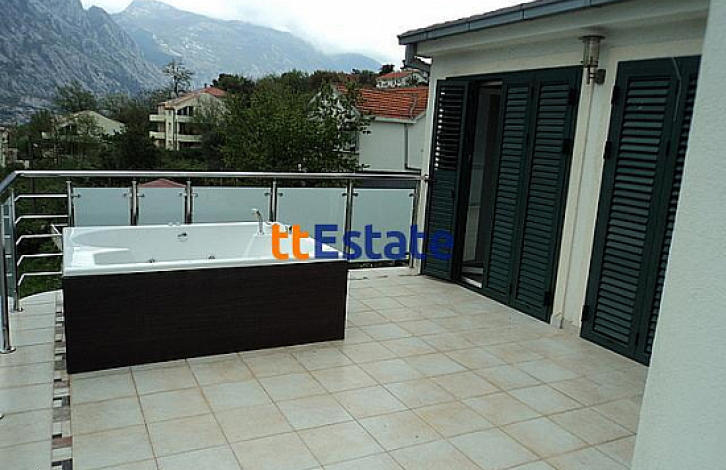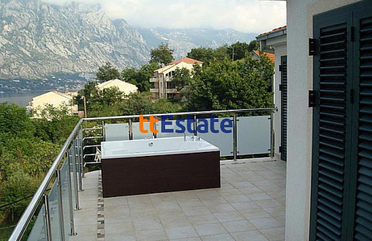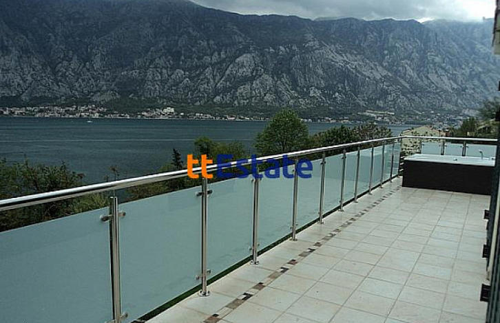 Превосходный пентхаус в посёлке Прчань с восхитительным видом на Боко-Которский залив. Пентхаус находится в небольшом комплексе с закрытой территорией и бассейном. Комплекс состоит из двух зданий по три квартиры в каждом. Каждый апартамент со своим отдельным входом. Общая площадь пентхауса составляет 137м^2 с террасой. Апартаменты состоят из просторной гостиной, двух спален и двух ванных комнат. Полы в гостиной с подогревом. В каждой комнате кондиционер. В кухне установлена немецкая кухня. Из гостиной и из одной из спален выход на террасу общей площадью 37м^2 со своим джакузи на ней. Возле дома есть свободная парковка для автомобилей. На территории комплекса есть управляющая компания.