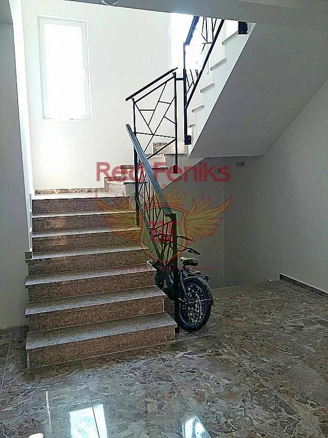 Всего в 600 метрах от моря расположен пяти этажный новый дом. В доме осталось две квартиры на пятом этаже. Площадь квартир составляет 63м2 и 72м2. Квартиры с двумя спальнями и с двумя ванными комнатами. Вид с террас на горы и частично на море. Возле дома есть парковка. В пешей доступности несколько продовольственных магазинов, пекарня, кафе, рестораны. Внутренняя отделка квартир будет закончена в октябре 2017 года. 63м2 – 2сп – 2 ванные комнаты – 89 600 евро 72м2 - 2сп – 2 ванные комнаты – 92 700 евро