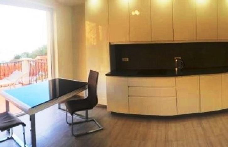 Квартира площадью 63м2, находится на 4м этаже, последнем. Гостиная/кухня, ванная, спальня, две террасы. Комплекс в котором находится эта квартира окружен зеленью, имеет свою ухоженную территорию и бассейн.