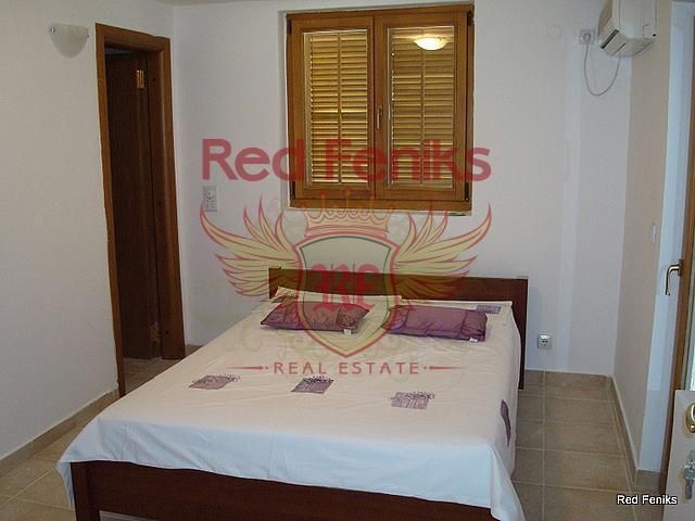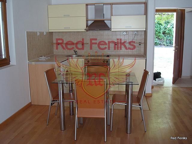 Двухспальные апартаменты в комплексе в Прчани. Комплекс состоит из двух домов по три этажа. Апартаменты находятся на первом этаже трёхэтажного дома. Перед апартаментами есть небольшой садик с террасой. За домом находится парковка для автомобилей. Апартаменты состоят из двух спален, гостиной с кухней и ванной комнаты. В комплексе есть управляющий. На территории комплекса также есть бассейн и зона отдыха с барбекю. Апартаменты продаются с мебелью. Расстояние до моря 300 метров.
