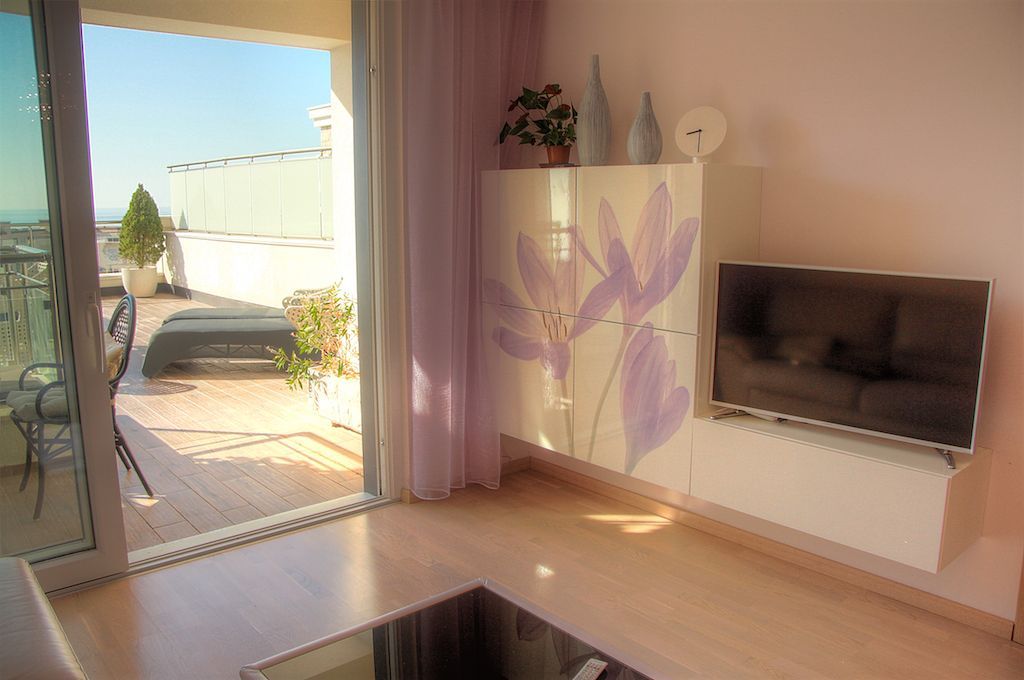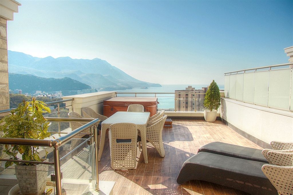 Роскошная квартира в одном из лучших городов Будванской ривьеры с просторной террасой, на которой Вы можете любоваться закатами, сидя в джакузи или обедать на свежем воздухе в кругу близких Вам людей!