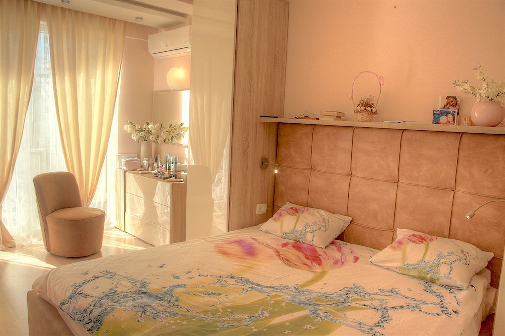 Квартира с 2 спальнями, гостиной с кухней, ванной, и просторной террасой с видом на море. Также квартире принадлежит кладовка, площадью 7 м2. Вся мебель установлена на заказ от лучших итальянских и немецких производителей. В квартире есть все, что необходимо для комфорного отдыха, а также для постоянного проживания. Современный стиль, высокое качество строительства и отделочных работ.