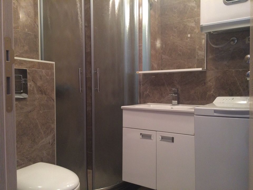 №5 Квартира – студия.Общая площадь: 28 кв. м. Комнаты: одна комната, которая совмещена скухней. Терраса: есть (с видом во двор дома).КВАРТИРА ПОЛНОСТЬЮ МЕБЛИРОВАНА.Стоимость: 87000 евро.