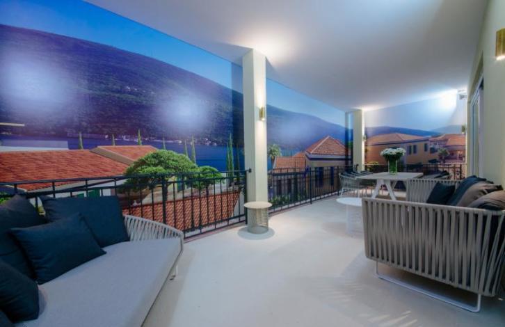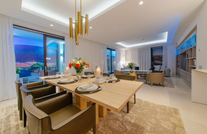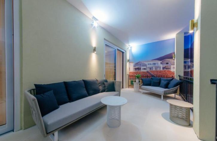 К продаже предлагается роскошная квартира в шикарном комплексе Порто Нови, в Кумборе. Общая площадь квартиры составляет 129 м2. Планировка квартиры составляет: кухня, совмещенная с гостиной и столовой зоной, две ванные комнаты, две спальные комнаты, один гостевой туалет, терраса, с которой открывается великолепный вид на море. Квартира располагается на втором этаже четырехэтажного дома. Расстояние до моря составляет 70 метров.
