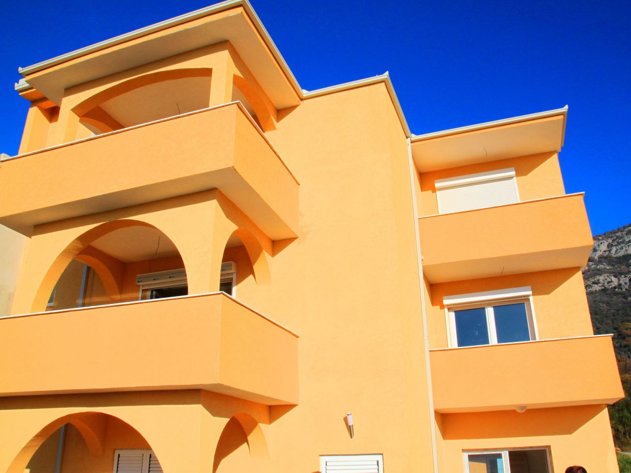 Площадь каждого этажа 150 кв.м., на каждом этаже размещается по два апартамента с одной спальней, либо большой апартамент с двумя спальнями и 2 санузлами. С каждого этажа открывается вид на море и город Бар. Во дворе есть место для обустройства бассейна. На плоской кровле предусмотрено обустройство солярия. Перед домом довольно вместительный паркинг.