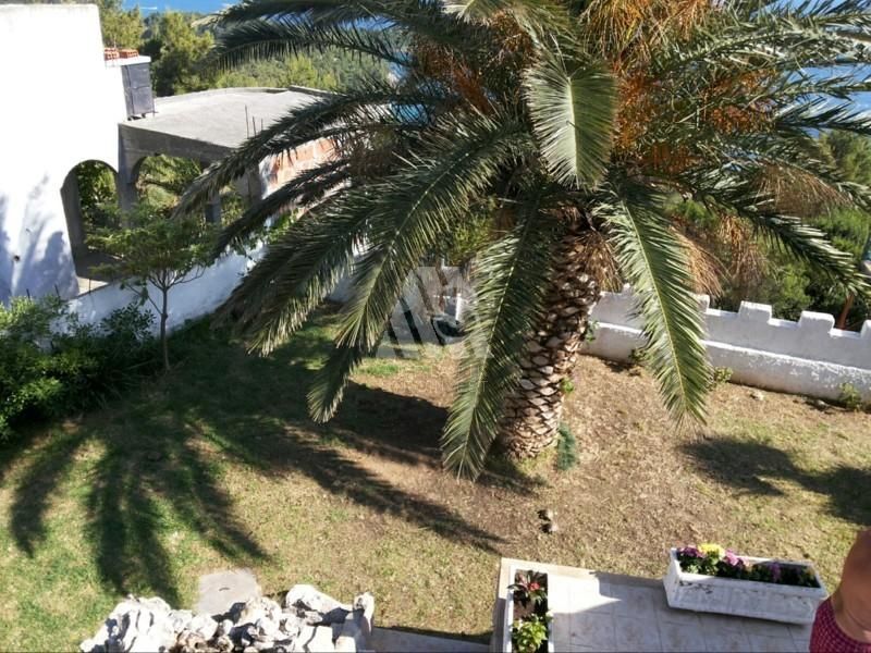 Участок огражден, имеет пальмы и цитрусовые плодоносящие деревья.