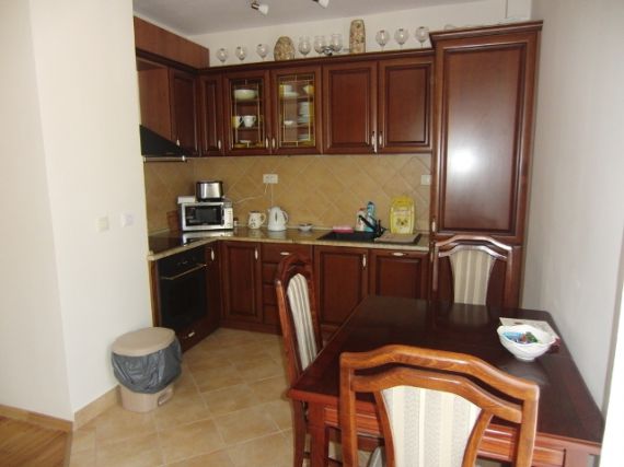Квартира состоит из гостиной, кухни, спальни, ванной комнаты, террасы. Квартира полностью меблирована и оснащена необходимой техникой: стиральная машина, система кондиционирования, встроенная электрическая плита, вытяжка. Вся мебель новая из натурального дерева. В прихожей, ванной комнате и кухне полы с подогревом. Пол выстлан паркетом. Отделка квартиры выполнена из современных, качественных материалов.