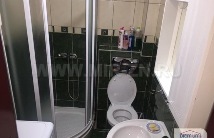 Ванная комната: душевая кабина, умывальник, туалет, стиральная машина, фен.