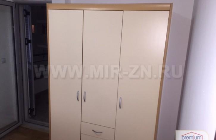 Спальня: двуспальная кровать, шкаф, тумбочки, гладильная доска, утюг, кондиционер.
