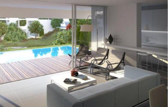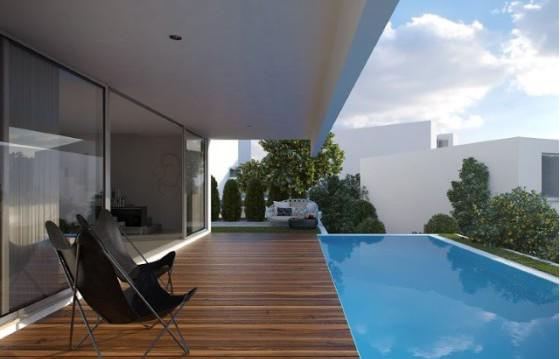 Каждая вилла включает: Холл, гостиную открытой планировки с полностью оборудованной кухней и выходом на террасу с приватным бассейном. Четыре спальни (один сьют), три ванных комнаты. Кладовая и цокольный этаж с гаражом на две машины.