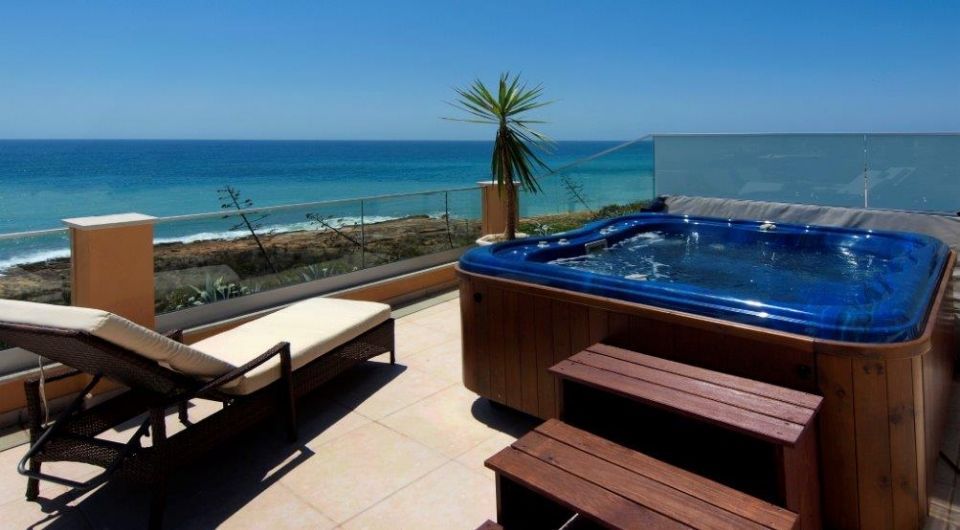 4 bedroom front line villa in Praia da Luz. This is a once in a life time opportunity to purchase a front line property in a spectacular location with stunning views. Situated in prime position, only a few minutes’ walk from the beautiful beach village of Praia da Luz, this villa has been fully re-modeled to the highest of standards. Accommodation comprises of a master bedroom with en-suite on the ground floor along with 2 further bedrooms and a family bathroom. A private garage attached to the property will offer storage space. Fronted by wide windows, the main living accommodation is on the first floor to maximize enjoyment of the stunning views. A light & spacious open plan living and dining area leads to a luxury kitchen and dining terrace with unrivaled views. A guest shower-room as well as an office or 4th bedroom complete this floor. A large roof terrace with Jacuzzi, shower-room, dining area and barbque will complete the indoor/outdoor living experience. * Fully installed electric under floor heating, air-conditioning, central vacuum system, central sound system & alarm * Spacious open plan living areas with BBQ terrace * Luxuriously finished with top of the range kitchen & bathrooms * Fully Furnished * Roof terrace * Built in barbeque * Garage
