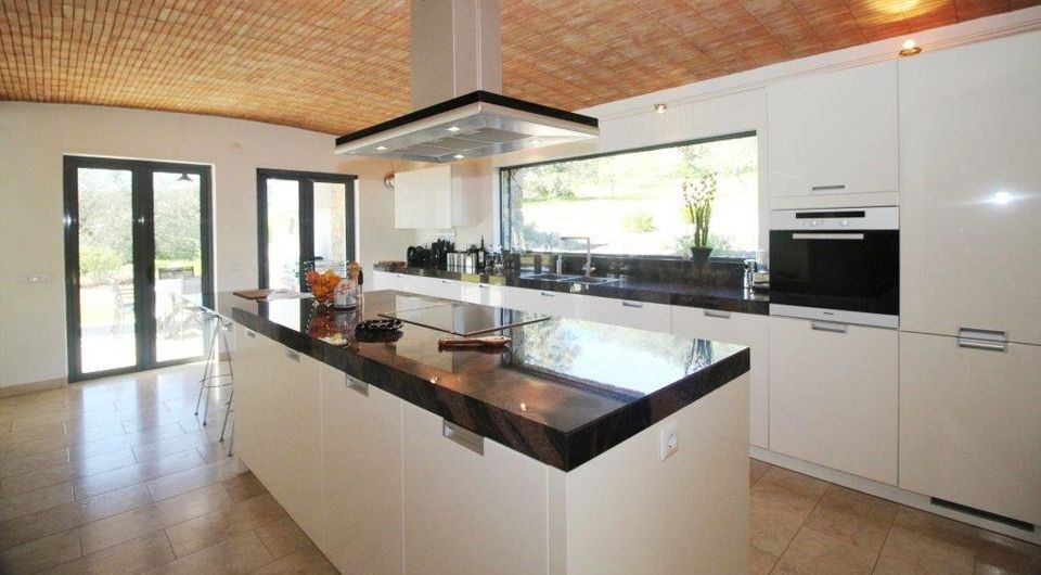 This stunning, architectural master piece looks as if it has been here forever, as it blends into the local countryside so perfectly. The villa blends old with new harmoniously. This is the perfect hideaway for those who love luxury and all modern features but who want to chill in the peaceful Algarvian hills. The villa has been designed with two independent halves linked by a beautiful, glass topped hallway. To the right the master accommodation and to the left for the guests. Oil fueled underfloor heating and air-con throughout, solar panels for the hot water, alarm system and much more. Must be seen to be fully appreciated. One of the most beautiful homes on the market.