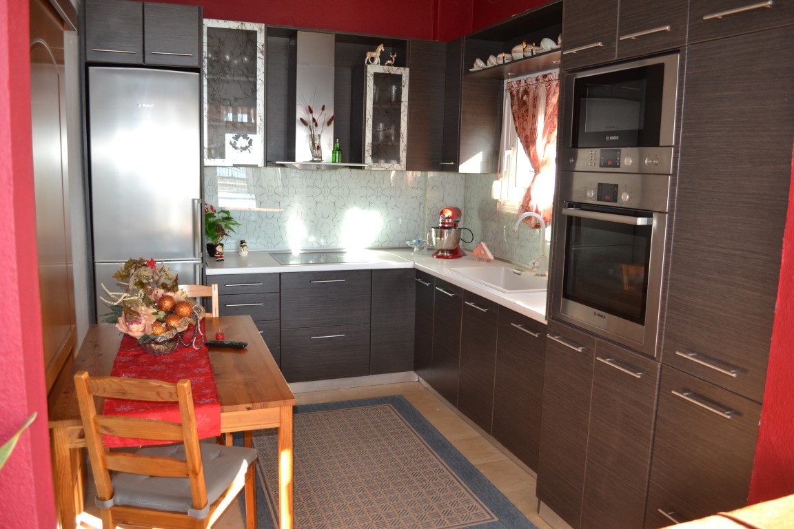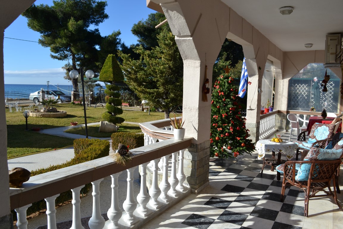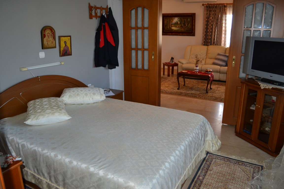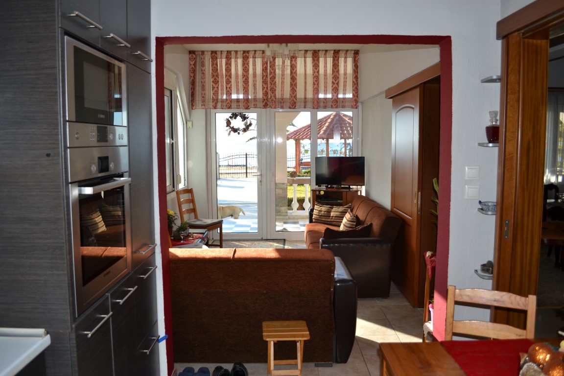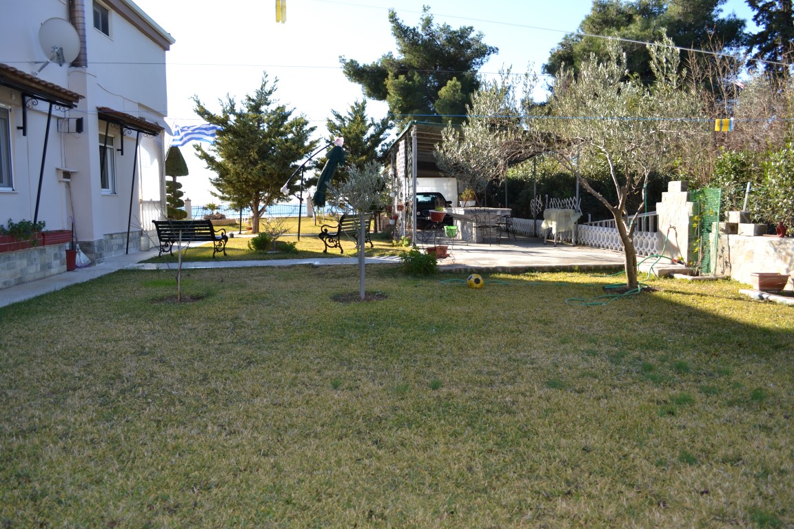 Продается 2-этажный коттедж площадью 230 кв.м в Халкидиках. Первый этаж состоит из 2 спальных комнат, гостиной с кухней, гостиной, 2 душевых комнат. Второй этаж состоит из 4 спальных комнат, гостиной, 2 кухонь, 2 душевых комнат. Из окон открывается вид на море. У объекта есть солнечные батареи для нагрева воды, камин, кондиционер, тенты, зона барбекю, отопление. Недвижимость продается с мебелью. К недвижимости относится парковочное место, сад.