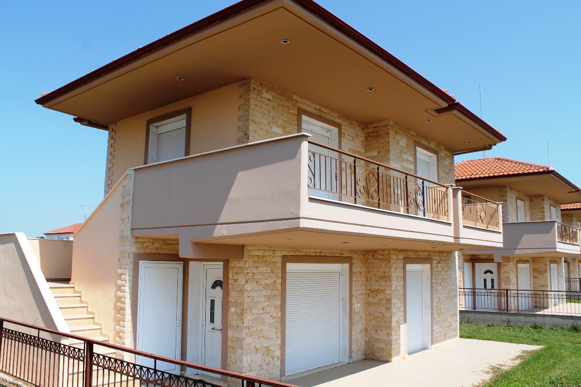 Продается 2-этажный коттедж площадью 95 кв.м в Халкидиках. Первый этаж состоит из гостиной с кухней, одного санузла. Второй этаж состоит из 2 спальных комнат, одной душевой комнаты. У объекта есть камин, отопление. К недвижимости относится парковочное место. В наличии имеются пять одинаковых коттеджей по цене 140.000 евро и один угловой коттедж по цене 145.000 евро.