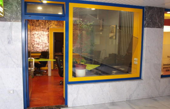 В торгово-деловом центре Порторожа продается красиво меблированное офисное помещение, которое может быть использовано под офисную или торговую деятельность. Есть большая витрина, помещение под кладовую и туалет. Постройка 2001 года. (1422)