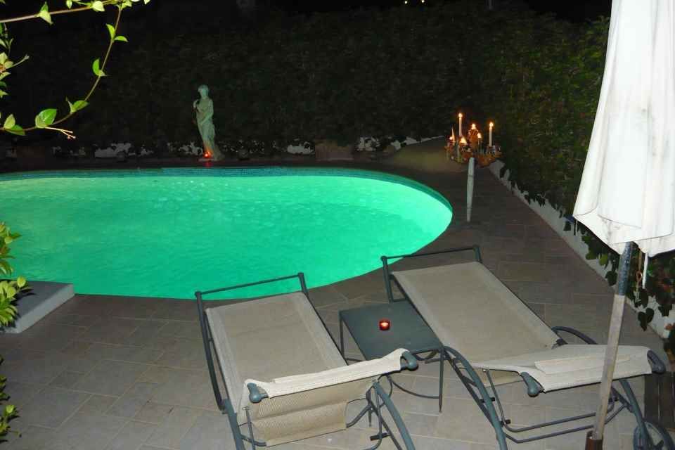 На участке имеется собственный бассейн с ночной подсветкой и сад в японском стиле, зона Chill Out, а также гараж.
