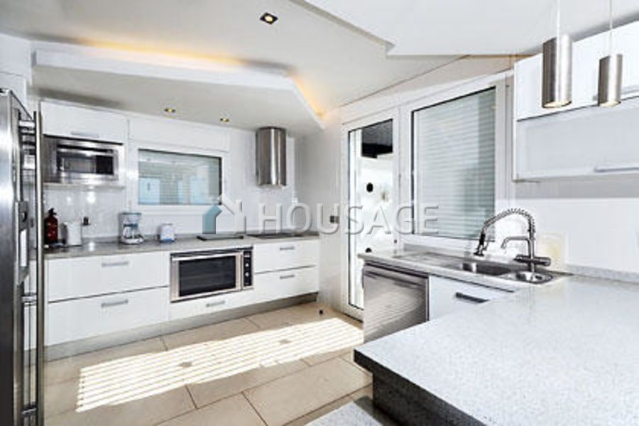 Impressive luxury villa in modern style, with centralized control system-home automation. 5 bedrooms, 6 bathrooms completely furnished and equipped and with sea view. Terrace/solarium area (250 m2), 10×4 m pool and spa-jacuzzi for 6 persons (both heated with solar energy) and barbecue. Music room with underwater window to the pool. The pool has been prepared for super-swim. Garage for 3 cars, satellite TV on all floors.