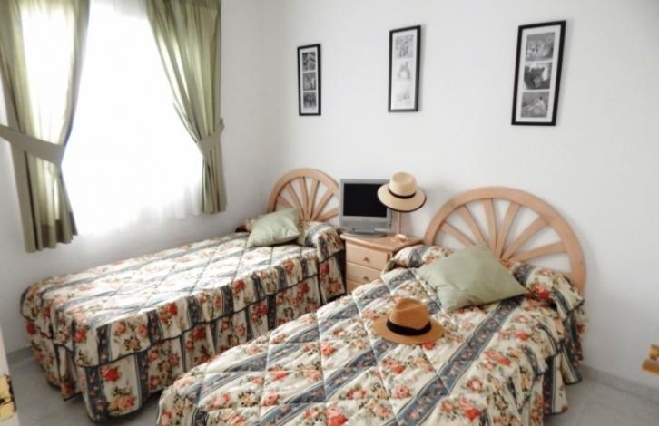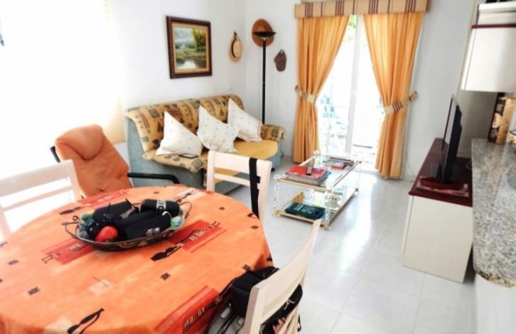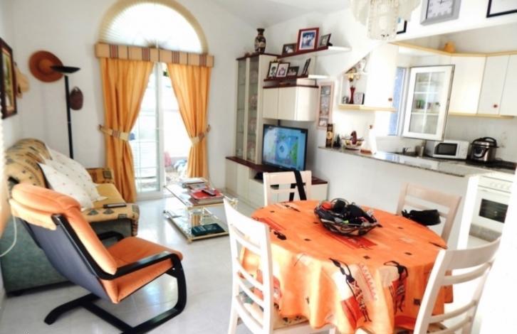 Шикарный двухэтажный дом, площадью 70 кв. м. В доме собственный солярий, хозяйственная комната, ванная, две светлые спальни со шкафами, кухня с барной стойкой и просторный салон. Полностью укомплектован бытовой техникой и мебелью. На территории участка зеленые насаждения, взрослые деревья, заезд для автомобиля и кладовка. Прекрасный вариант для отпуска или постоянного проживания. Расположен дом на территории закрытой резиденции с общим бассейном, зеленой зоной, рестораном, спортивной площадкой, теннисным кортом и круглосуточной охраной. В непосредственной близости огромный центр Каррефур и Абанерас, пляж в 4 км и школа в 300 м от дома. Звоните заказывайте просмотр!