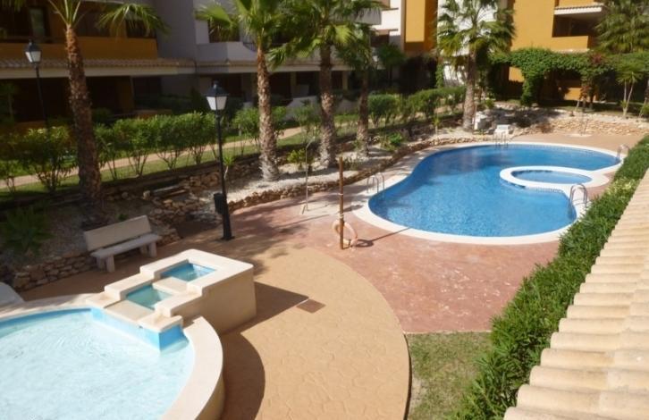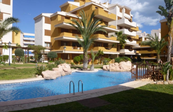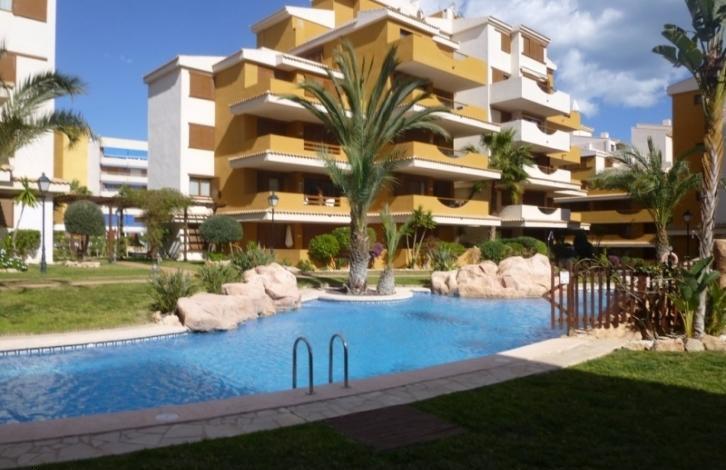 Уютная квартира в красивом жилом комплексе. Общая площадь - 70 кв. м. Состоит из салона, 2 спален, ванной, кухни, террасы. Продается меблированной, с бытовой техникой. Из окон открывается вид на внутренний двор, в котором есть бассейн и место для парковки автомобиля. В шаговой доступности магазины, рестораны, бары.