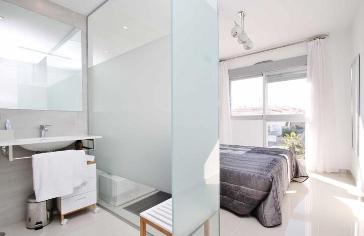 Недвижимость состоит из салона-столовой, 2 спален, 2 полностью укомплектованных ванных комнат, полностью оборудованной кухни, просторной террасы и собственного сада или соляриума с видом на море.