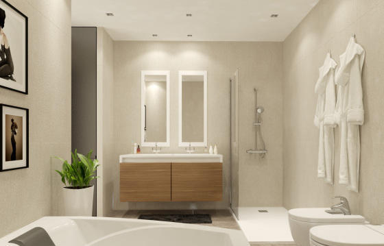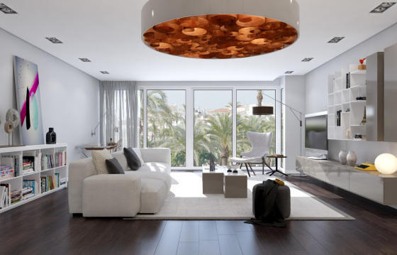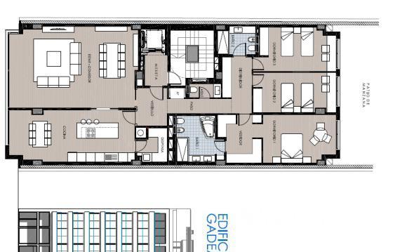Модерновые апартаменты в Аликанте в здании «Гадеа», строящемся на проспекте Доктора Гадеа, на первом (по-русски втором) этаже. Окна обращены на север. Салон с обеденной зоной, 3 просторные спальни, 2 ванные комнаты, туалет, итальянская кухня, терраса 30м2, кладовая и подземный паркинг.