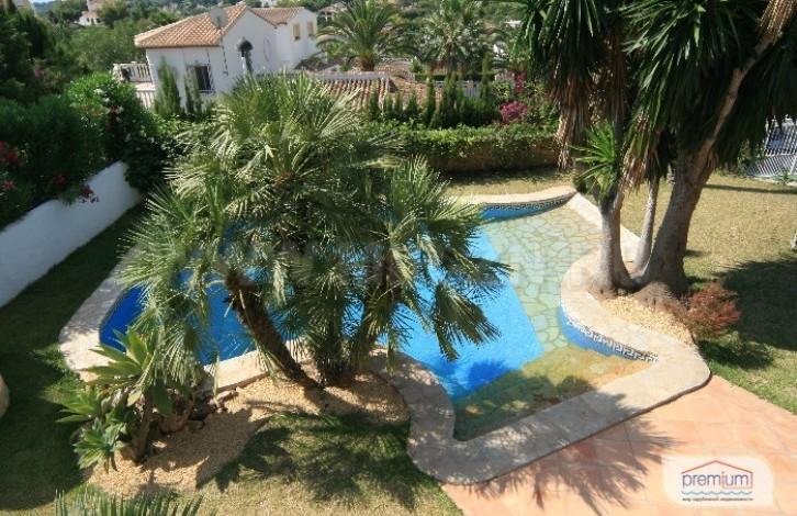 Красивый сад с газоном, средиземноморской растительностью и пальмами, водопад, имеет автоматическую систему полива и наружного освещения.
