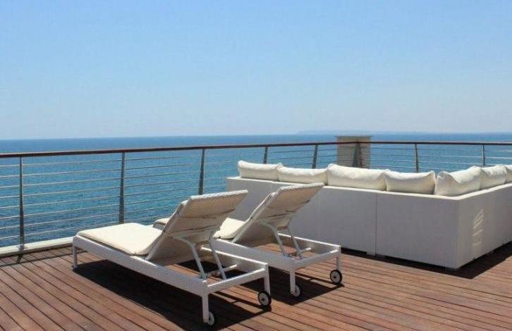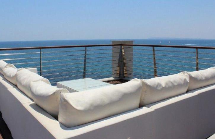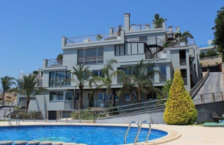 Продаётся шикарный пентхаус на первой береговой линии в Испании, Коста Бланка, Аликанте. Квартира расположена между городом Аликанте и пляжем Сан Хуан (San Juan). В пентхаусе есть 3 комфортные спальни, 3 ванные комнаты, уютная кухня, светлая гостиная-столовая и терраса, гардеробная комната, прачечная комната, подвал, частный лифт, гараж на 2 машины, общий бассейн и прекрасный сад.