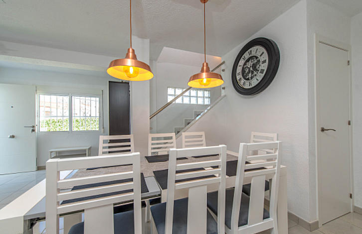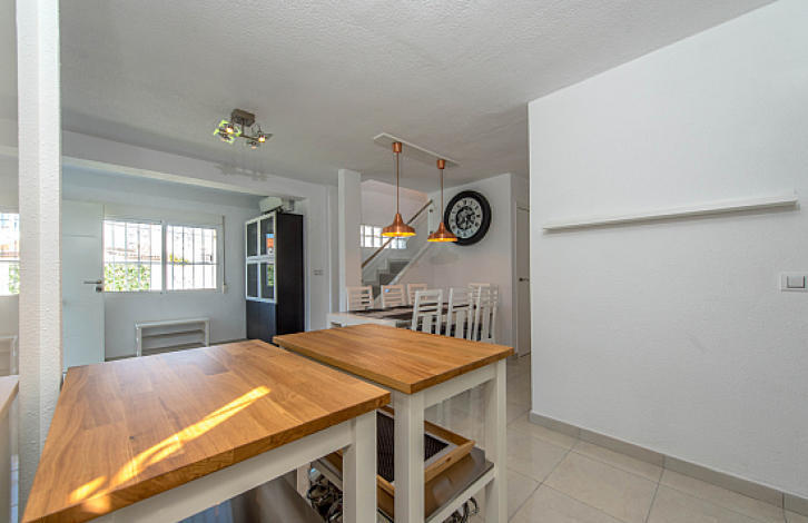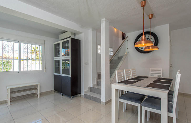Недавно отремонтированный 2-х этажный таунхаус в Ла-Мата, Торревьеха. Салон с обеденной зоной, открытая кухня, 4 спальни, 2 ванные комнаты, терраса. Общая площадь дома 96 м2. На участке в 140 м2 есть сад и гараж. Таунхаус продается полностью меблированным. До пляжа – 300 метров.Ла-Мата – одно из лучших мест отдыха на Коста-Бланке, здесь находится один из самых длинных песчаных пляжей побережья длиной 2250 метров. Ла-Мата славится заповедной зоной и идеально чистыми берегами, разнообразной флорой и фауной. Это место отличает развитая инфраструктура. Магазины, рестораны, кафе и бары, банковские отделения, детские и спортивные площадки, парки – все это прекрасные условия как для уединенного отдыха, так и для отпуска большой дружной семьей. Здесь есть все необходимое для комфортного отдыха вдали от городской суеты. За несколько минут можно доехать до гольф-клубов Лас-Колинас, Кампоамор, Лас-Рамблас и Вилламартин. Район имеет хорошее транспортное сообщение: трасса 332 связывает курорт с близлежащими городами, а по автомагистрали АР-7, протянувшейся вдоль всего побережья Средиземного моря, можно добраться до границы с Францией на севере Испании или до Альхесирас на юге.