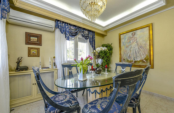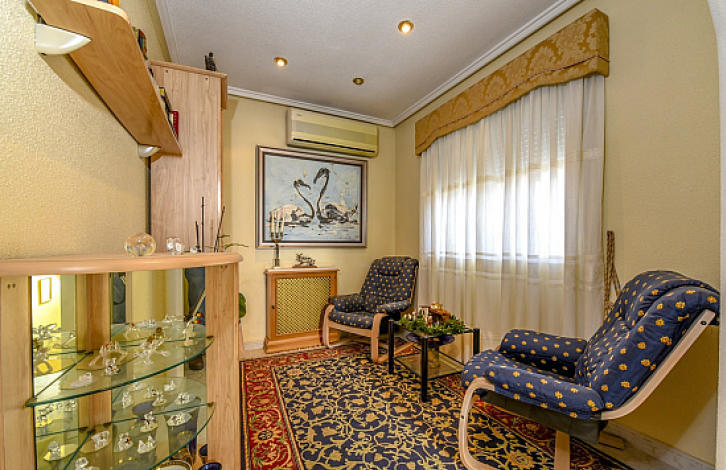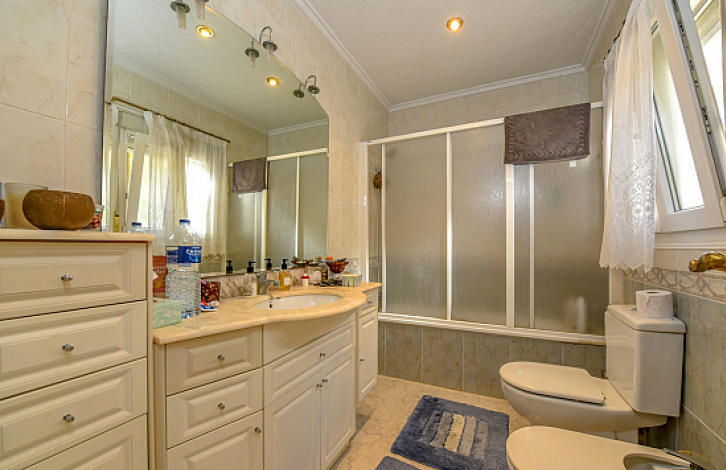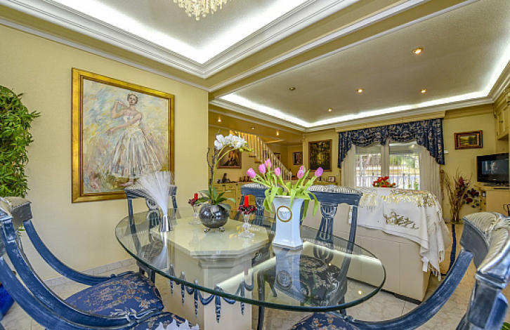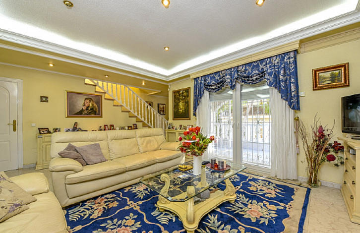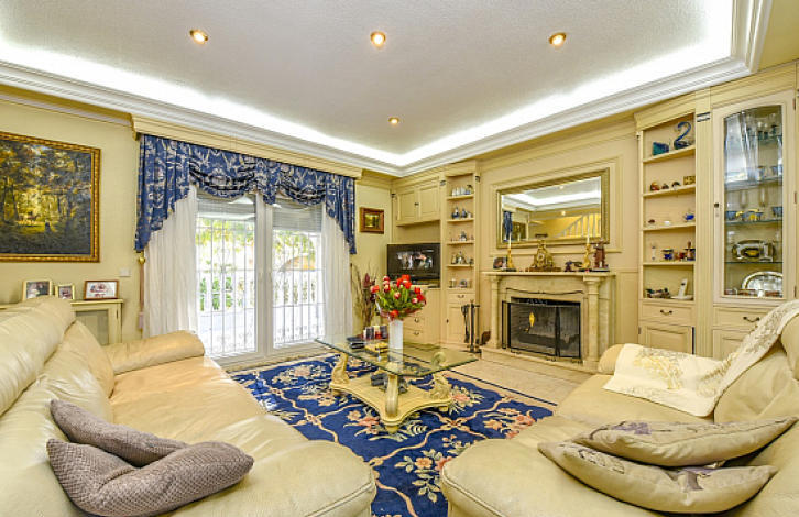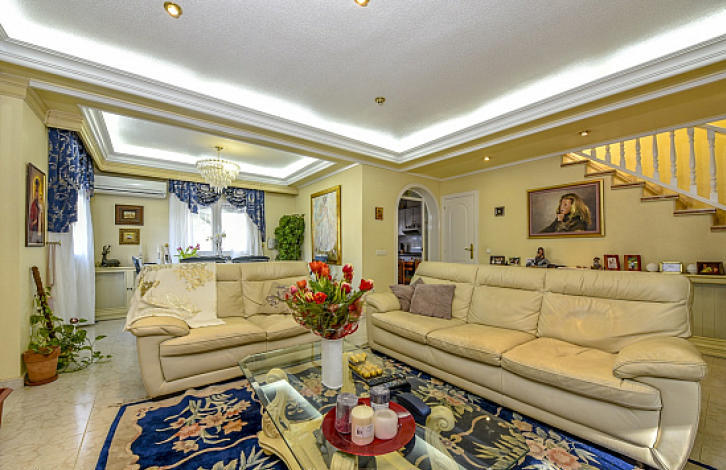 2-х этажная вилла в урбанизации Донья-Пепа, Сьюдад-Кесада. Нижний этаж: большой салон с камином, отдельная кухня, 1 ванная комната. Верхний этаж: 3 спальни, 2 ванные комнаты. Общая площадь дома 134 м2. Участок 629 м2 окружен сосновыми деревьями, крытый бассейн с подогревом, зона для барбекю и подземный паркинг.