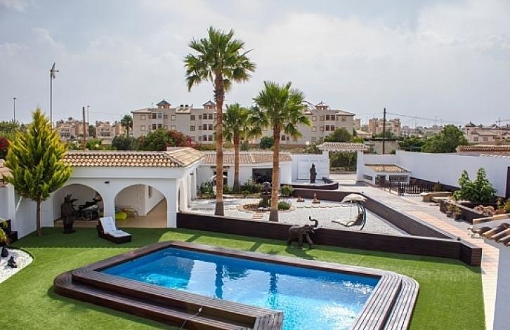 Потрясающая одноэтажная вилла с домом для гостей и СПА-центром в районе Кабо Роиг (Ориуэла Коста), земельный участок площадью более 1500 м2, распределенный в различных обстановках (сады, бассейн, чилаут и т.д.), с охранной сигнализацией, камерами наблюдения и датчиками периметра помещения. Главный дом 275 м2 в стиле авангарда, отдельный дом с захватывающим дизайн салона 80 м2, кухня высокого уровня, офис, 3 спальни с двуспальными кроватями и 2 ванные комнаты. Спальня, 45 м2, есть гардеробная и ванная комната с гидромассажной кабиной,телевизор,ванная комната, турецкая баня и т.д., и терраса – солярий с видом на море.Имееться Кондиционер во всех комнатах и отопление с помощью радиаторов с низким энергопотреблением.Спа находится рядом с бассейном, с джакузи, гидромассажной кабиной, сауной и ванной комнатой.Гостевой дом имеет отдельный вход и состоит из 1 просторной спальни и одной ванной комнаты. Закрытый гараж с вместимостью до 3 транспортных средств. Впечатляющий сад в японском стиле Дзен несколько различных зон: беседка, зона Чилаут (Chillout) и Барбекю с краном для пива, дизайн стойка с оргстеклом и подсветкой. Садовая мебель из плетеной смолы.Бассейн с подогревом и ночной подсветкой. Он поддерживает 32 градуса круглый год с помощью теплового насоса.