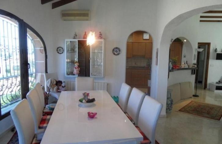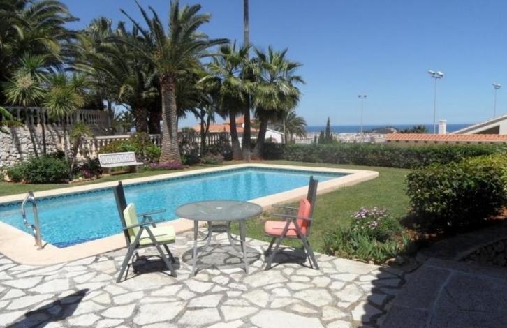 Вилла с фантастическим видом на море и Дению.Была построена в 1985 году, но постоянно обновляется. Главный этаж имеет две спальни, две ванные комнаты с душем, кабинет (может быть использован в качестве третьей спальни), столовую и гостиную с полностью оборудованной мини-кухней.В цокольном этаже располагаются гостевые апартаменты. Они состоят из двух спален, ванной комнаты и кладовой.На участке расположены крытая терраса, бассейн, барбекю, душ на открытом воздухе и несколько зон отдыха, гараж с электрическими воротами.Дом окружает сад с различными средиземноморскими растениями, оборудованныйавтоматическим поливом.Вилла имеет центральное газовое отопление и кондиционирование воздуха, электрический котел.