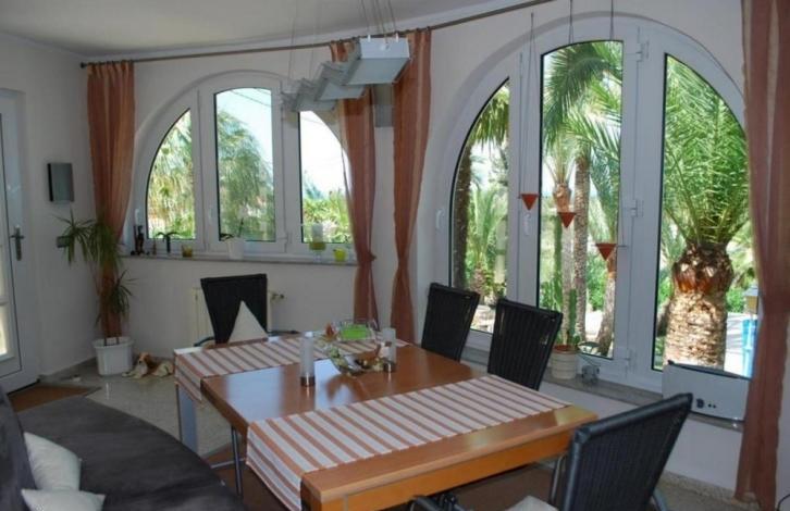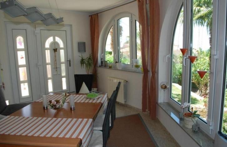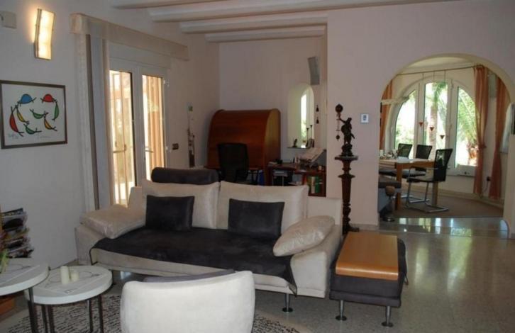 Очень уютный дом, который был полностью отремонтирован в 2005 году, с видом на море и гостевыми апартаментами.На первом этаже располагаются застекленная терраса (используется как столовая), холл с выходом к солярию, кухня, главная спальня с гардеробной и ванной комнатой. На этом же этаже есть просторная полностью оборудованная летняя кухня, которая может быть использована в течение всего года.В цокольном этаже есть отдельная квартира с гостиной, спальней и ванной комнатой с душевой кабиной.Вилла оборудована кондиционерами с тепловым насосом, центральным отоплением на газу.
