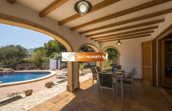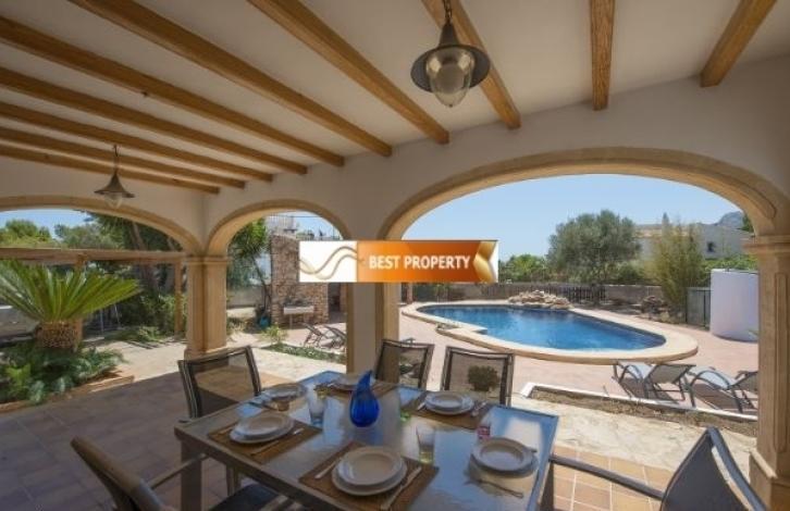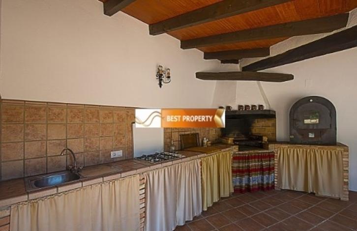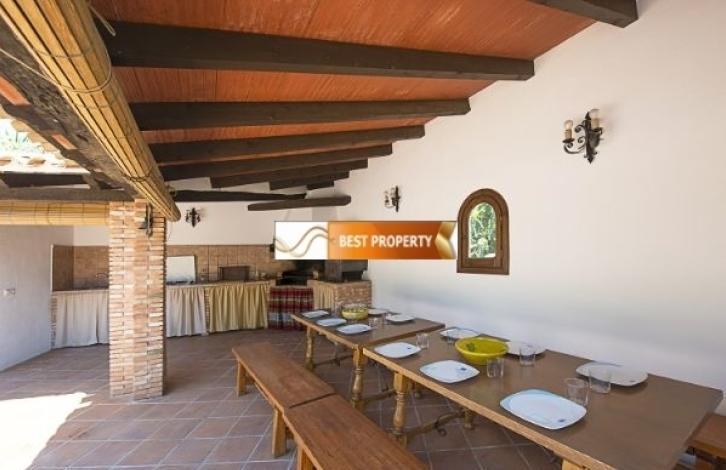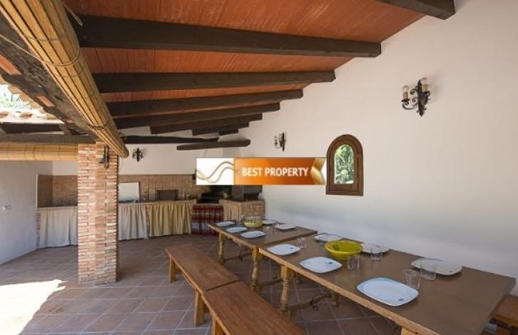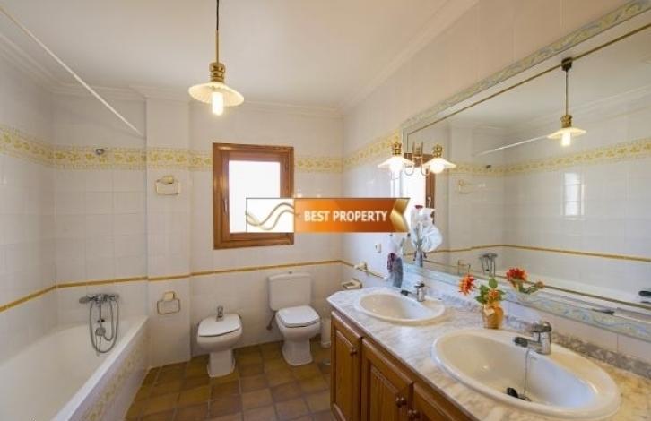 Просторная вилла в непосредственной близости к песчаному пляжу, супермаркетам и ресторанам (400 метров), автобусной остановке (500 метров).Основной этаж (доступ через 2 ступеньки): гостиная-столовая со спутниковым телевидением, сплит-системой кондиционирования воздуха и выходом на террасу с бассейном, современная кухня, оборудованная газовой плитой, посудомоечной машиной, духовкой, микроволновой печью и сплит-системой кондиционирования воздуха, комната со стиральной машиной, большая спальня с 2 одноместными кроватями и потолочным вентилятором, ванная комната, большая спальня с 2 односпальными кроватями и потолочным вентилятором, спальня с двуспальной кроватью, кондиционером и ванной комнатой. Первый этаж (доступ по лестнице - 20 ступенек): гостиная-столовая со спутниковым телевидением, сплит-системой кондиционирования воздуха и выходом на террасу с видом на Средиземное море и бассейн, кухня, оборудованная газовой плитой, посудомоечной машиной, духовкой, большая спальня с двуспальной кроватью, кондиционером и ванной комнатой, спальня с 2 односпальными кроватями и кондиционером, спальня с 2 кроватями и кондиционером, ванная комната.На участке вам предлагается провести жаркие летние дни на просторной террасе с бассейном (9х5 метров) с римскими лестницами и зоной для принятия солнечных ванн. Здесь же есть душ, ванная комната с туалетом и раковиной, зона для пикника с барбекю, парковка для 3-4 автомобилей.