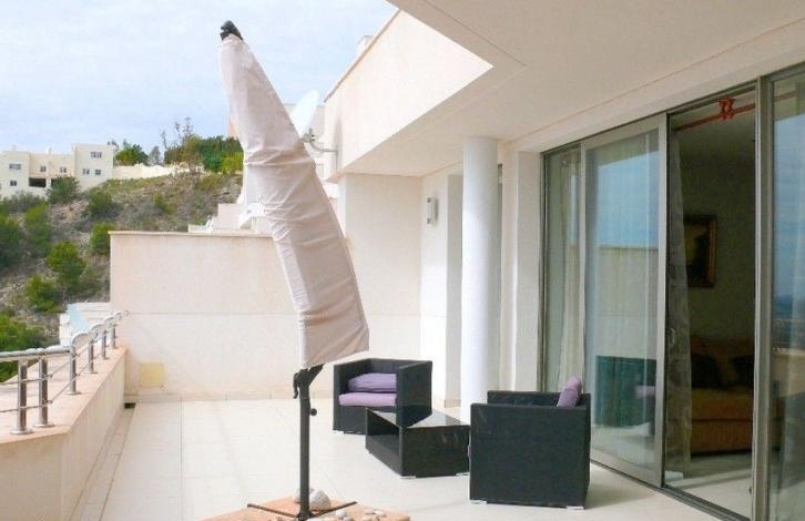 Апартаменты 2009 года строительства, находятся в отличном состоянии, установлена центральная система отопления и кондиционер с тепловым насосом. Имеется просторная гостиная с выходом на террасу в 55 м2, спальни со встроенными шкафами. Кухня отдельная, оснащена необходимой бытовой техникой Электролюкс. На входе установлена бронированная дверь, на окнах электрические жалюзи. В цену включено парковочное место и кладовая.