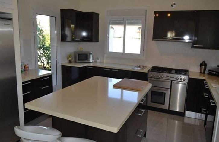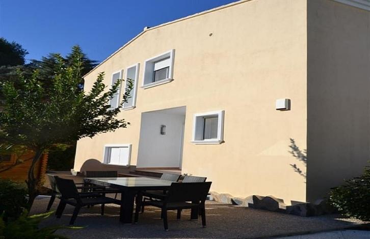Предлагаем виллу 2009 года постройки. Планировка очень хорошо продумана и удовлетворит любые ваши требования. Включает два этажа, установлен кондиционеры с тепловым насосом, центральное отопление, сигнализация, видеодомофон. На первом этаже расположены: уютная спальня с ванной комнатой, полностью оборудованная дизайнерская кухня с бытовой техникой, просторная гостиная-столовая, гостевой туалет. На верхнем - две спальни (главная с выходом на террасу) и кабинет. Участок хорошо благоустроен и требует минимального технического обслуживания, имеется бассейн, парковочное и прекрасный сад.Отличный климат и спокойная атмосфера делают это место подходящим как для круглогодичного, так и для сезонного проживания.
