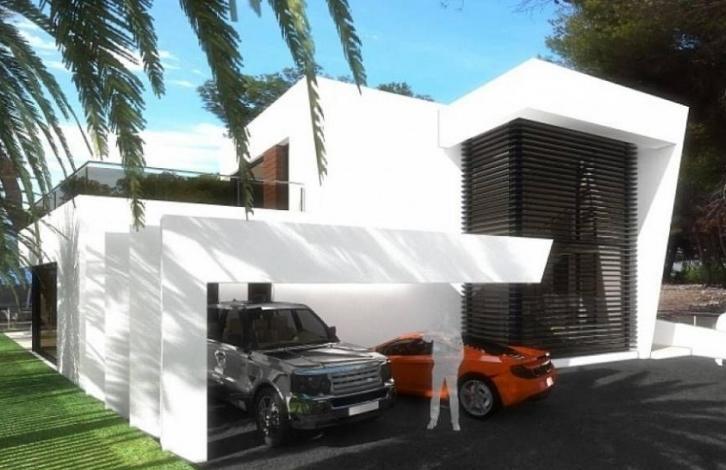 Проект виллы с современным дизайном разработан для семей, которые любят просторные и светлые пространства, поэтому главной особенностью этой виллы являются большие окна во всех комнатах, которые заполняют их солнечным светом и теплом и три этажа, связанные внутренней лестницей и лифтом. На первом этаже находятся: кухня с островом, просторный салон - столовая с выходом на веранду и на террасу, туалет для гостей, два номера с собственной ванной комнатой и прямой доступ к террасе у бассейна. Второй этаж включает две спальни с собственными ванными комнатами и выхдом на террасу. В подвале есть гараж на две машины, машинный зал, склад, подсобное помещение, ванная комната, сауна, небольшой тренажерный зал и большой зал с крытым бассейном.