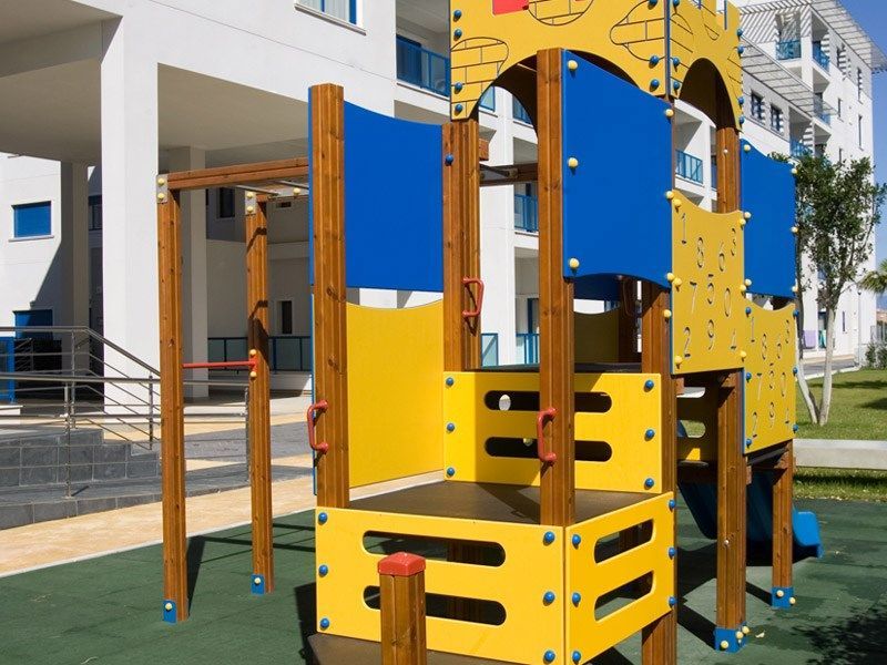 На территории комплекса имеется большой сад с декоративными фонтанами, бассейнами для детей и взрослых, джакузи и игровые площадки для детей..