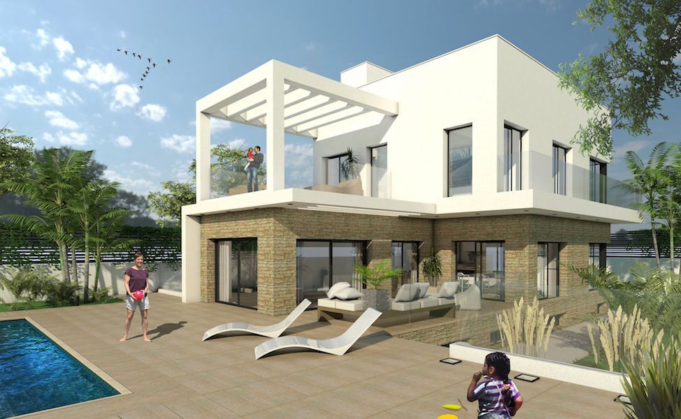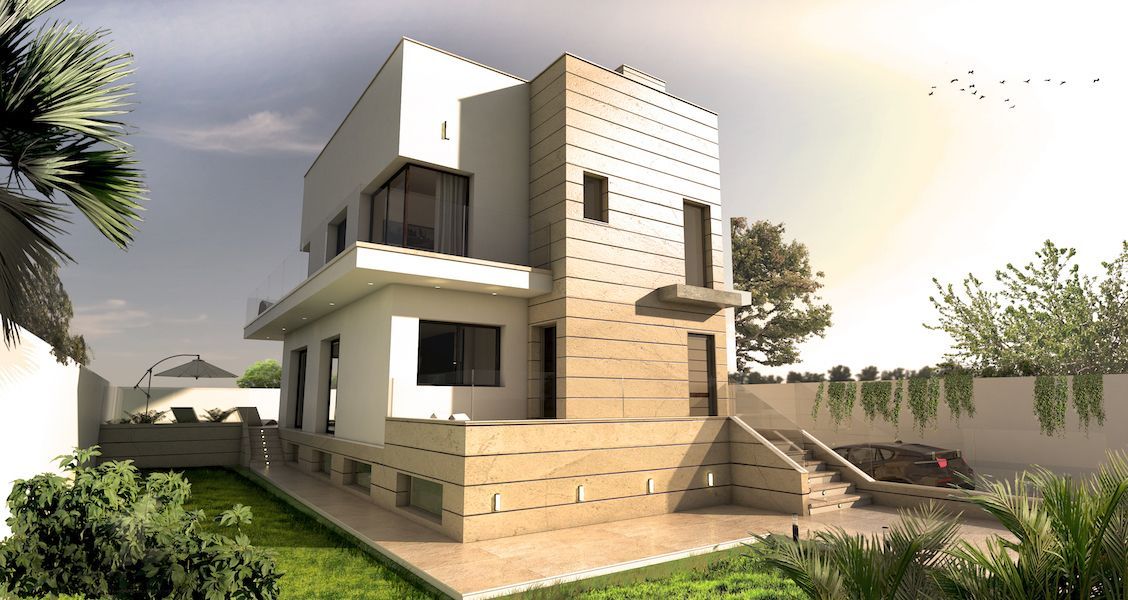 Проект представляет собой двух этажный дом с солярием, подвальное помещение для гаража и частный бассейн на участке.