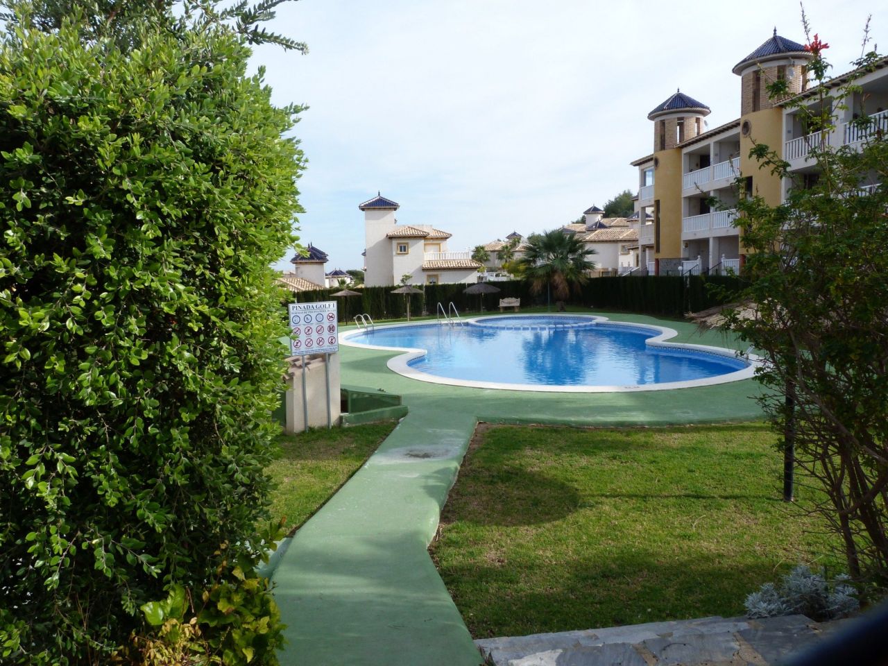 Трехкомнатная квартира в резиденции Пинада Гольф с бассейном. Квартира состоит из 2 спален со встроенными шкафами, просторной террасы площадью 12 м2, зала-столовой 18 м2, отдельнной кухни с выходом в прачеченую, ванной комнаты. Всё необходимое 5-10 минутной доступности на машине. Рассмотрим ваше предложение по цене.