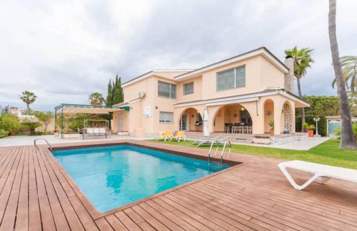 Красивая вилла с частным бассейном рядом с морем и песчаными пляжами. В доме 5 спален, 4 ванные, большая гостиная с камином, столовая, подвал в котором оборудована игровая зона с бильярдной, просторная кухня оборудованная бытовой техникой, и террасы общей площадью 80 кв м. В доме потрясающая мебель и элегантный стиль. Вилла очень светлая, комнаты просторные. На участке возле дома ухоженный сад, большой бассейн, оборудованная зона барбекю, патио с садовой мебелью. Сад оснащен системой автоматического полива.