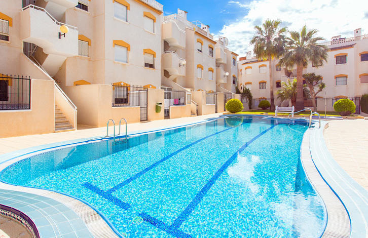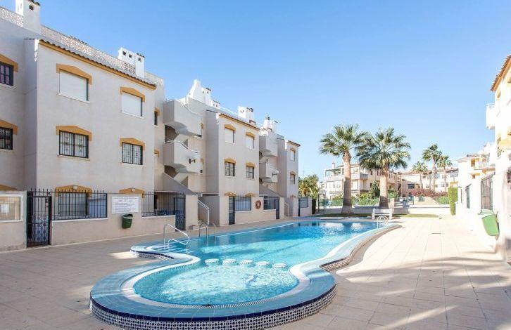 Апартаменты находятся в жилом комплексе "Торревиста-Росио" с общим бассейном и зелёными насаждениями. Росио-дель-Мар - это район с развитой инфраструктурой: в шаговой доступности находятся магазины, аптеки, автобусные остановки, бары, рестораны, фитнес-клуб. Торговые центры Зения-Бульвар, Абанерас и Пунта-Марина находятся в нескольких километрах. Хорошее сообщением с автомагистралью AP-7 и национальной дорогой 332. Пешком можно дойти до пляжей Пунта-Прима, Кала-Питерас, Плайа-Фламенка и Ла-Зения. За 10 минут можно доехать до полей для гольфа Лас-Рамблас, Лас-Колинас, Вилламартин и Кампоамор.