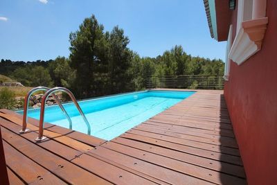 Снаружи имеется терраса с бассейном и гараж.