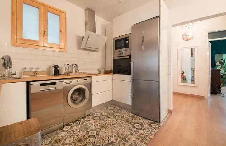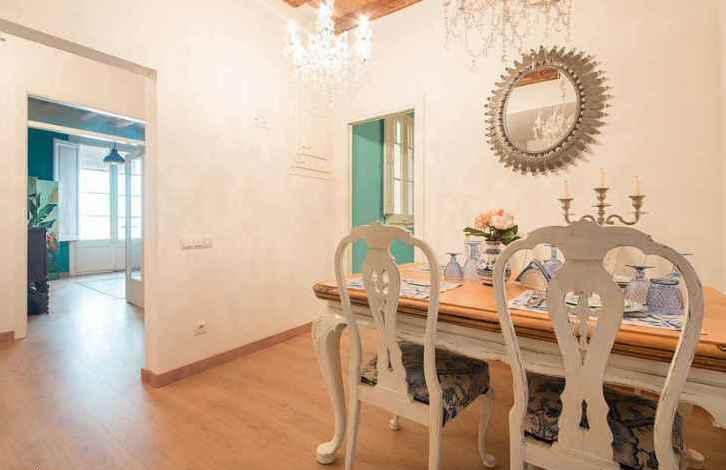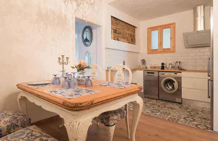 Эта полностью отремонтированная квартира объединяет элементы современного дизайна с трационными элементами каталонской архитектуры (высокие сводчатые потолки, мозаичные полы). Размер квартиры - 114м2, она состоит из 2 спален, 2 ванных комнат, просторной гостиной и кухни-столовой. Также в квартире имеется галерея,которая может быть использована и как личный кабинет, и как место для чаепития. Также в квартире есть небольшой балкон, встроенные шкафы и вся неоюходимая бытавая техника.