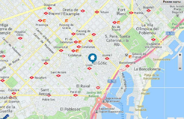 Cостоит из 2 спален с двуспальными кроватями, ванная комната, гостиная с кухней. Расположена на улице del Pi, которая является пешеходной улицей торгового района в нескольких минутах ходьбы от известных достопримечательностей, таких как Рамбла, Ла Бокерия, площади Каталонии и Ла Катедраль.