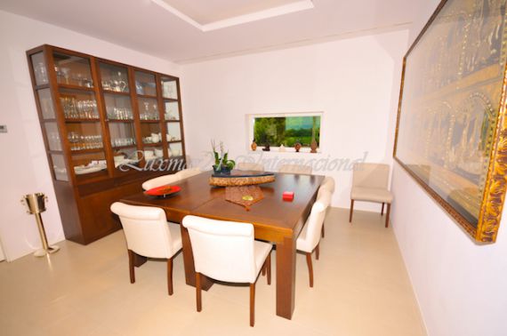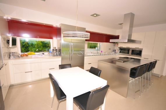На первом этаже расположены: Гостиная, столовая, кабинет, кухня, гостевой туалет и обширная терраса с летней столовой с барбекю и выходом в сад. Отдельное помещение для дополнительной гостиной.