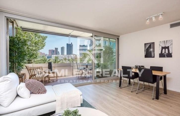 Квартира у моря и набережной Барселоны, расположена в охраняемом жилом комплексе на 16 этаже. Территория комлекса закрытая для посторонних, охрана 24 часа. Есть бассейн, подземная парковка. Квартира общей площадью 101 м2, терраса 10 м2, 3 спальни, 2 ванных комнаты, просторная гостиная с выходом на террасу, полностью укомплектованная кухня, которая также, имеет выход на террасу. В квартире есть отопление и кондиционирование. Квартира в отличном состоянии. В стоимость включено парковочное место. Из квариры открывается хороший панорамный вид на город. Ближайший торговый центр находится в 5-ти минутах пешком. Комплекс прилегает к прекрасному современному парку.