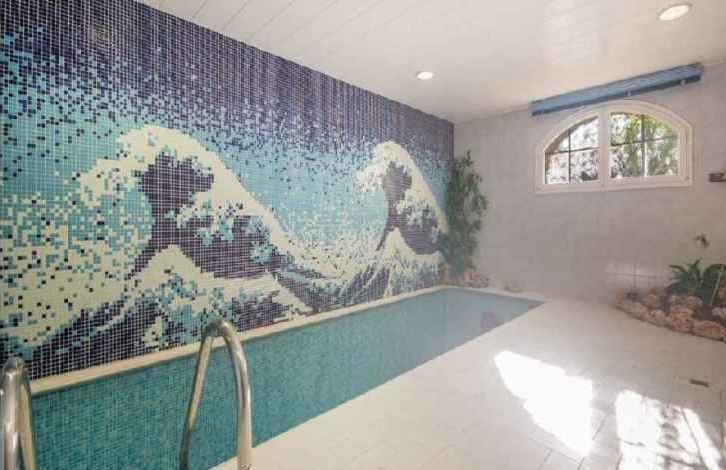 В доме также имеется подземный этаж с бассейном, залом с камином, спортзалом, ванной и кинотеатром.
