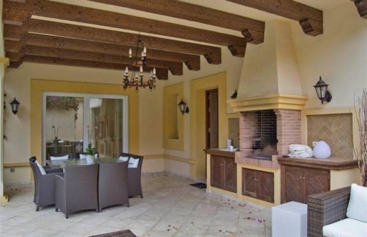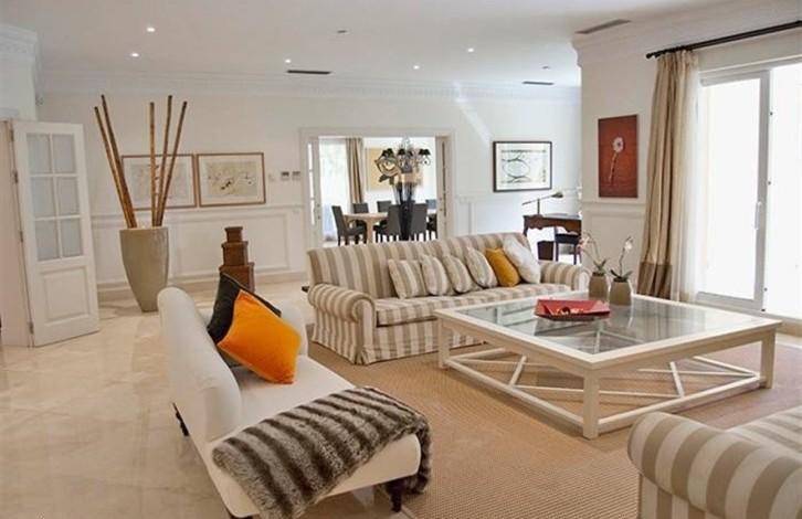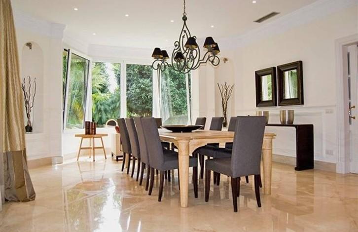 Вилла состоит из 6 спален с ванными комнатами, кухни с островком, винного погреба, тренажерного зала, гаража на 3 машины, зоны BBQ. Она оборудована кондиционером, теплыми полами, сигнализацией и автоматическими жалюзи.